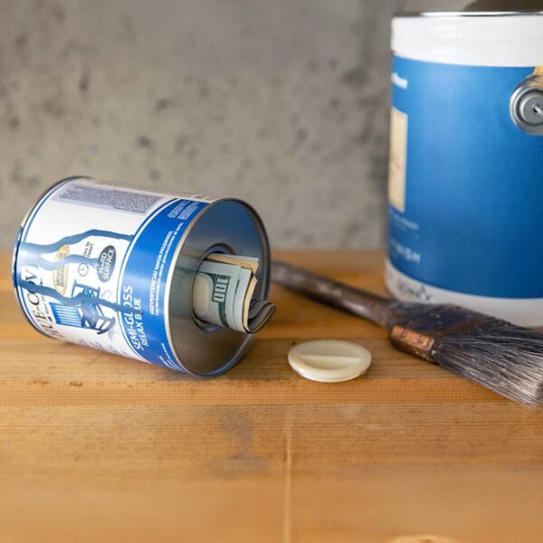 Our blue paint can safe is a potential gag gift that has real purpose! It’s a practical, functional stash can that hides in plain sight! Sized perfectly to blend in seamlessly among the contents of your utility closet or garage, it’s the perfect place to stash funds for those DIY home projects on your list. Designed with impeccable attention to detail, the authentic exterior of this “Hue-Cover” brand paint includes natural looking paint drips from the lid down the side of the can and a color recipe sticker on top. The spacious interior combined with the color choice of “Relax Blue” in a semi-glass finish will give you peace of mind to store even your most important family heirlooms, spare keys, or emergency cash in this durably constructed blue paint can safe. The screw-on lid embedded in the bottom of the can offers secure closure. This one-quart can is true to size. Approximately 5″ in diameter x 5″ high. Made of durable metal with hidden plastic closure in the bottom. Sold individually.