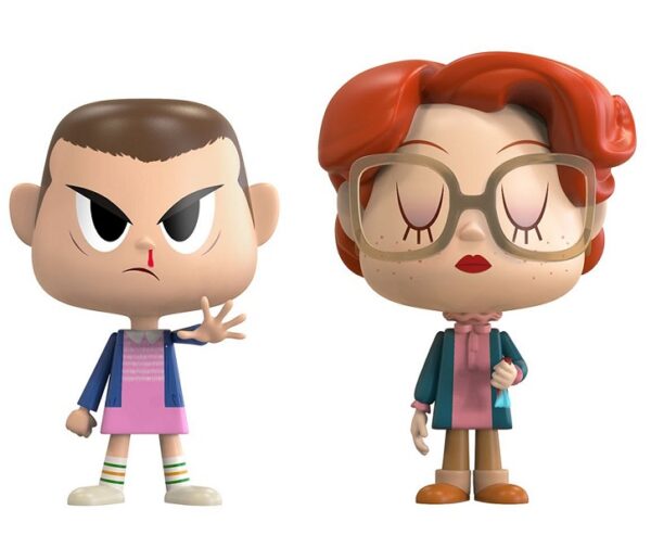 This wonderful Eleven Barb VYNL Collectible Set features stylized interpretations of two of the most intriguing characters from the Netflix original web television series, Stranger Things. Set in the fictional town of Hawkins, Indiana in the 80’s, Eleven (Elle) is a young girl with psychokinetic abilities and a limited vocabulary who is the subject of scientific experiments at a local laboratory. Barbara Holland, better known simply as Barb, is a cautious and sensible girl who mysteriously vanishes from a house party. In the first season of the series, it is revealed that Barb was pulled into the Upside Down and became a victim of the Demogorgon. The perfect gift for Stranger Things fans, and VYNL collectors alike! Featuring striking detail, accurate costumes, and the signature whimsy of the Funko VYNL collection. Remember, there’s no “i” in vynl because they always come in pairs! Figures are approximately 4” tall. Sold as a set.